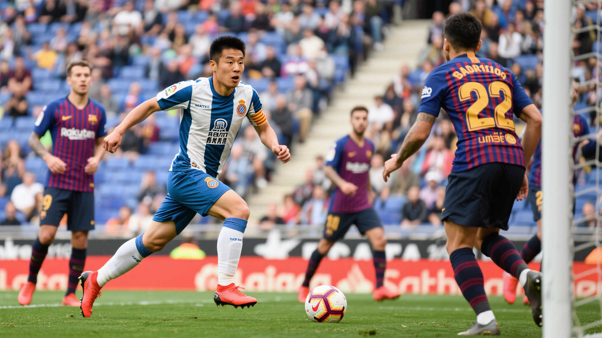 在足球赛场上,关键性的瞬间往往成为球员职业生涯的高光时刻。这些时刻不仅展现了个人技术与团队配合,也让我们看到了体育精神的魅力。2019年,中国球员武磊代表西班牙人队,在对阵巴塞罗那的比赛中,以一次惊艳绝伦的跑位和冷静绝妙的一击将比分扳为2-2,这一场景堪称他的“名片”瞬间。